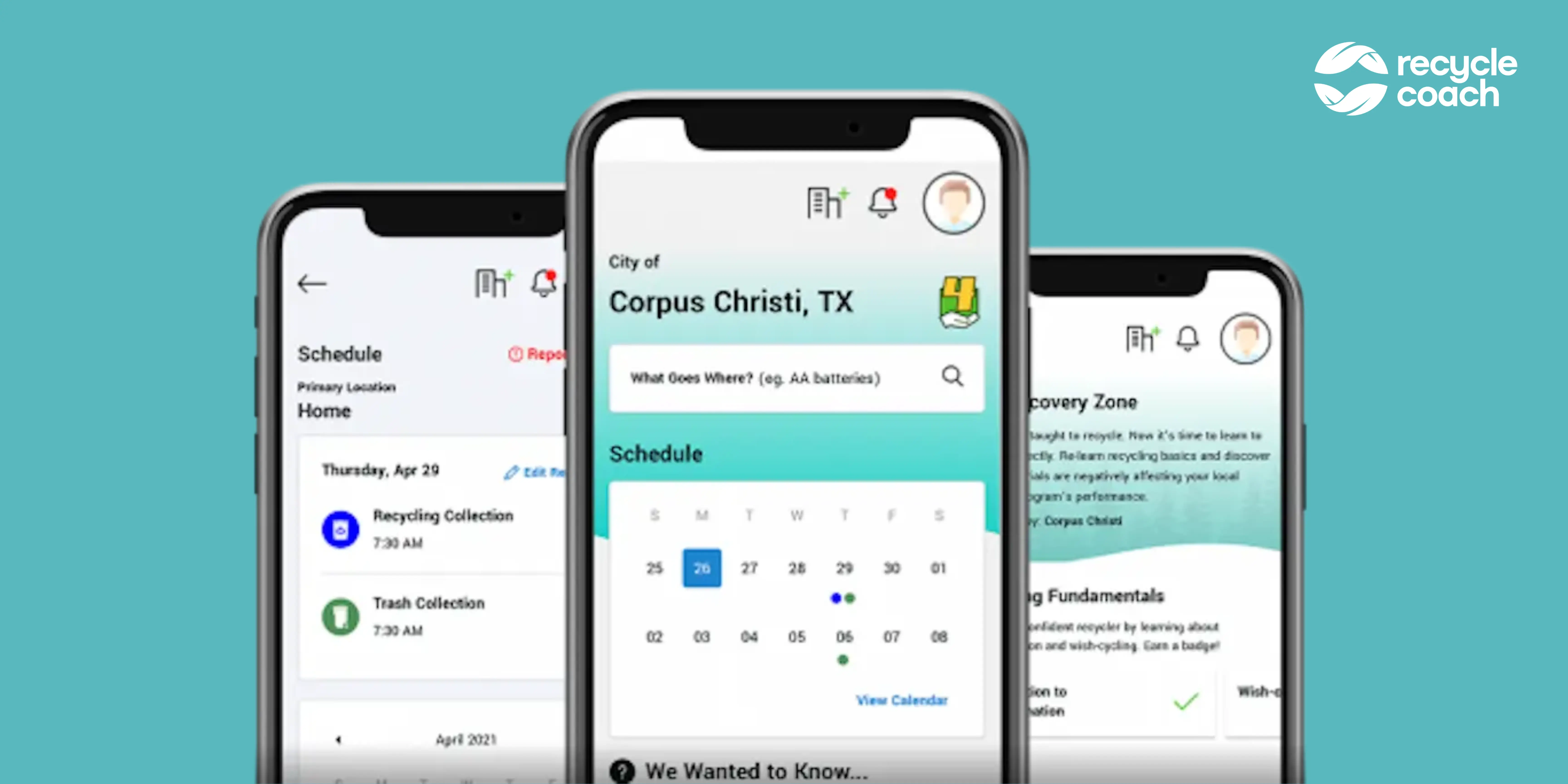 Recycle Coach acts as a municipal waste communication tool, providing residents with collection schedules, reminders, a “What Goes Where?” search tool, and educational content tailored to their specific local authority. It also features an image recognition tool that lets users take photos to identify items. The app is widely adopted across North American municipalities and serves as a white-label solution that councils can deploy under their own branding.