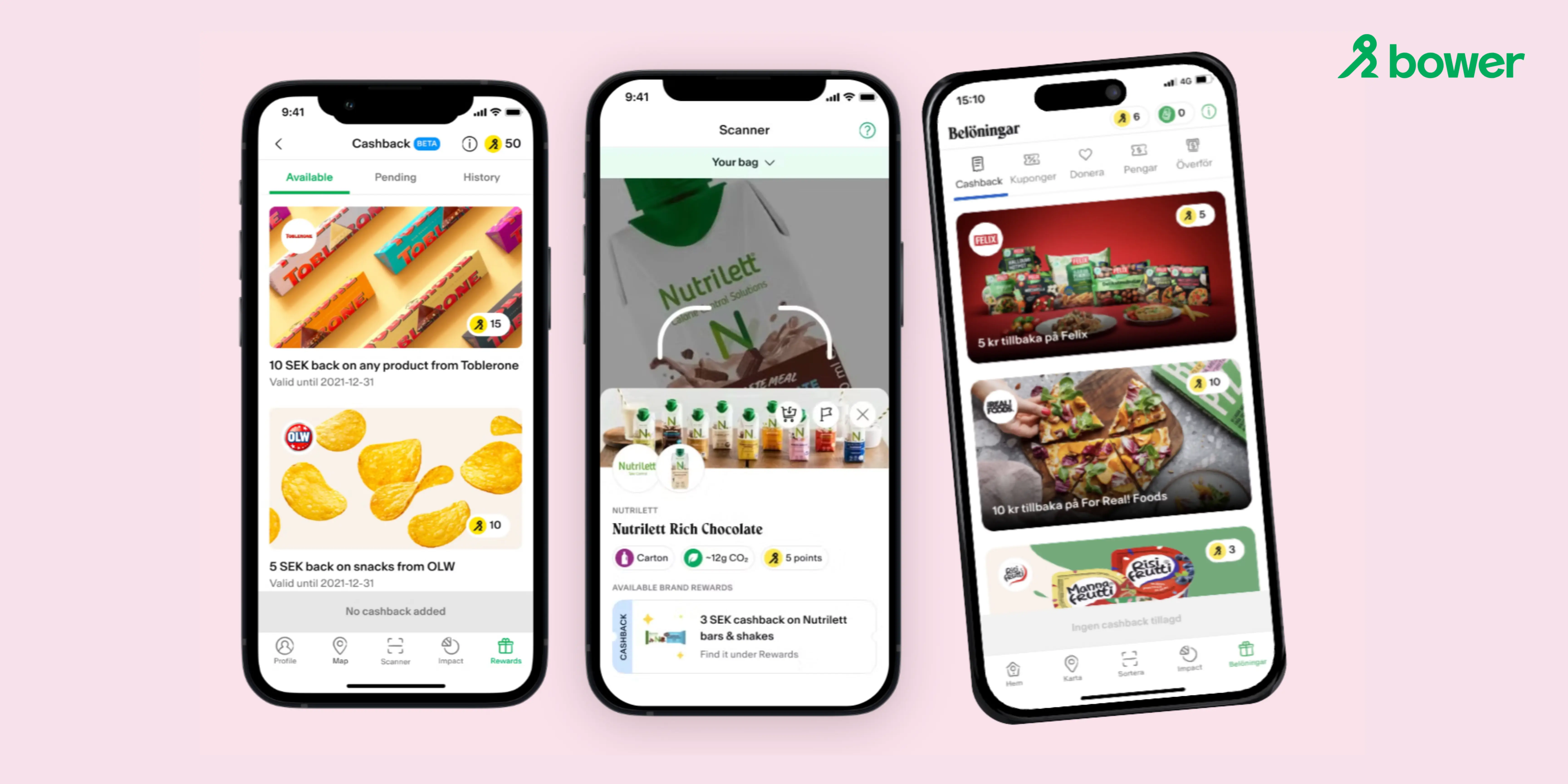 Bower — recently rebranded to Plovie in the UK — turns recycling into a game where users earn coins for correct disposal that can be converted to cash, coupons, or charitable donations. With over 700,000 users globally, it has the largest consumer user base of any rewards-focused recycling app. Users scan barcodes or use image recognition, locate nearby recycling points, and complete challenges to earn rewards.