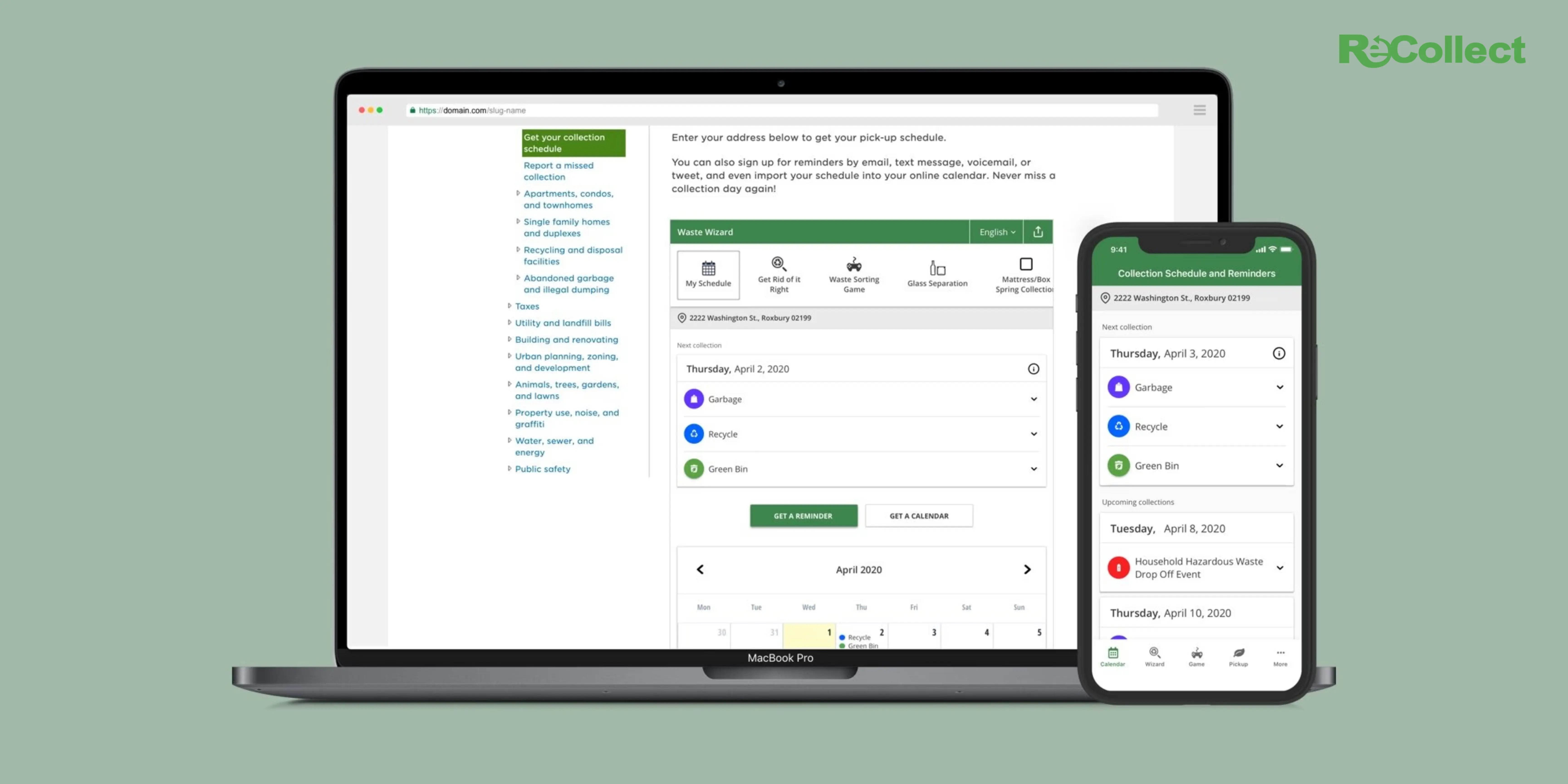 ReCollect operates as a B2B platform that municipalities use to create their own branded waste management apps and digital communication tools. Now owned by Routeware, it serves municipalities, waste haulers, and universities across North America and Europe with schedule reminders, a “Waste Wizard” search tool, collection notifications, and embeddable website widgets.